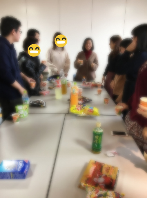 クリスマス会では生徒それぞれが1個ずつお菓子を持ってきてくれたので、お菓子を食べながらみんなで色々なお話をしましたよ☆