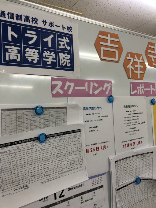 こんにちは。通信制高校サポート校 トライ式高等学院 吉祥寺キャンパスです。