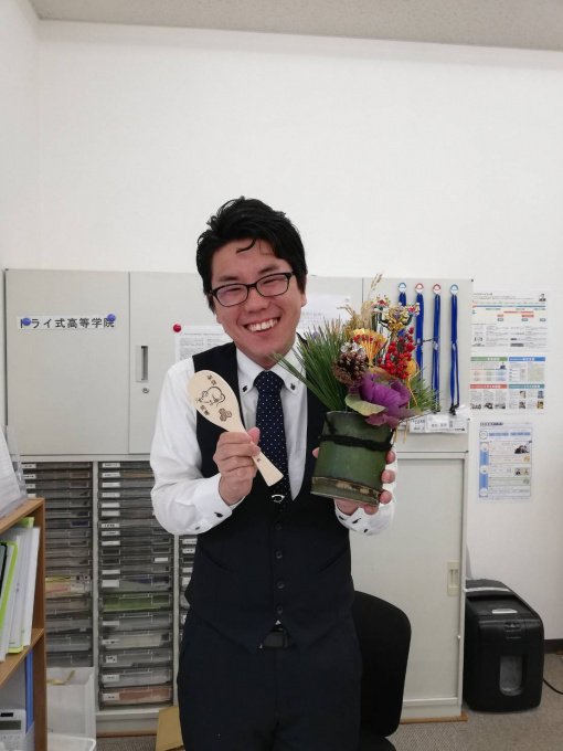 教室には素敵な、門松が飾ってあります。中本さんのお祖母様がお作りになられたものらしく、教室の雰囲気がとても良いです。中本さんの今年の抱負は「たくさんの生徒 先生方と勉強について話す」だそうです。