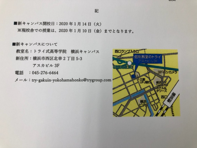 この度トライ式高等学院横浜キャンパスは、生徒数増加に伴う拡張のため、移転することになりました!