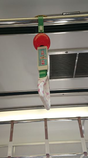 近鉄線の合格祈願のつり革を発見しました。通学途中に見つけたら握って合格祈願を★