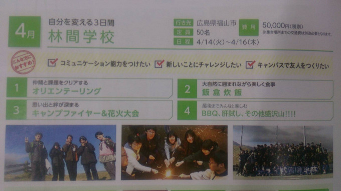 2020年4月14日~16日、広島県福山市にて林間学校を開催します!!