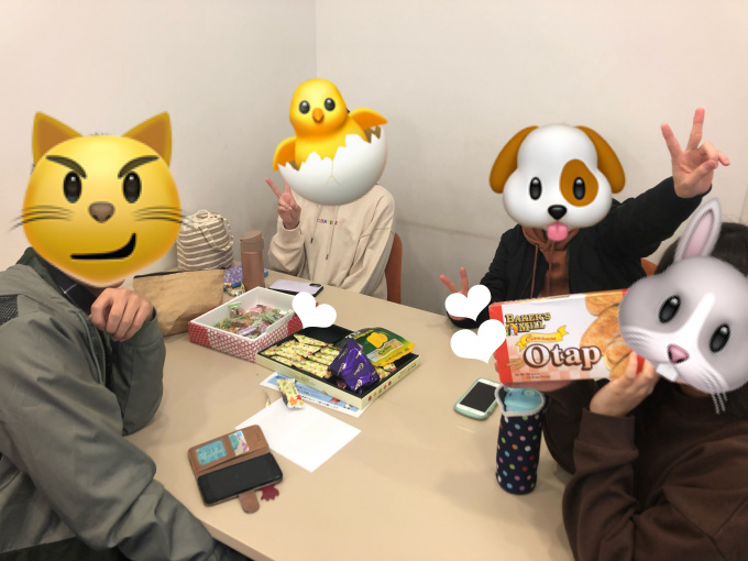 先日、セブ島留学から戻ってきた生徒さんからのお土産を食べながらみんなでお話しをしたり、一緒にお勉強をしたり。。