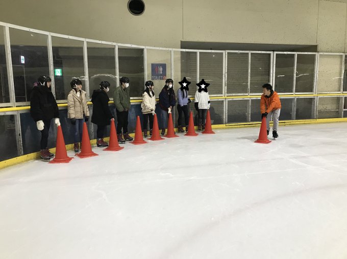 スケート初心者の方が多かったこともあり、ワンポイントレッスンを受講。