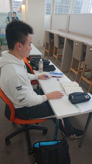 写真のK君(高2)は履修分の提出物は全て終了!スバらしい!残すは3月の試験のみ!