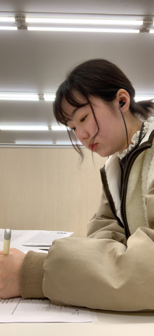 Sさん. 落ち着いた曲を聞いて集中力を高めています。勉強中は歌詞のないインストルメンタルを聞き、