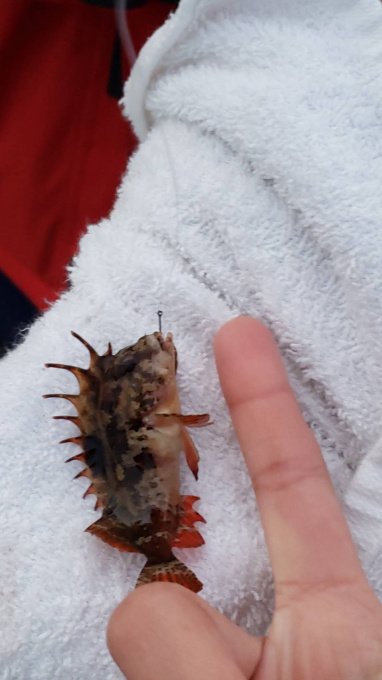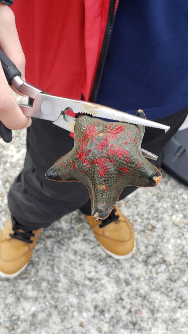 コブダイ(子供)、グレ(メジナ)、ヒトデ、ハオコゼという魚たちです!