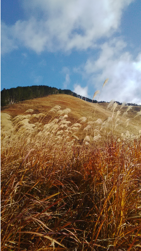 の端に連なる、穏やかなところでした。秋空にただよう途切れた白い雲と色の抜けたススキが風に揺