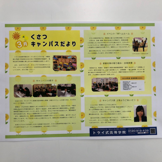 こんにちは! トライ式高等学院 草津キャンパスの戸谷です。