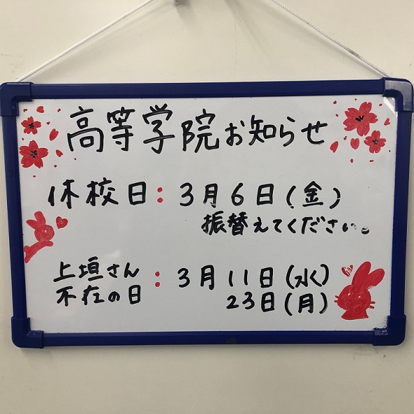 従いまして、この日は休校扱い=授業は振替となりますので、ご了承くださいませ。