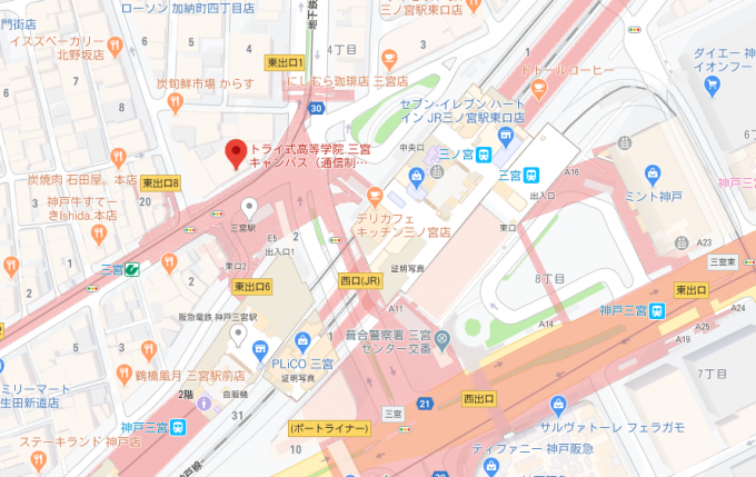 (↓三宮キャンパス周辺の地図です。ご参考に!)