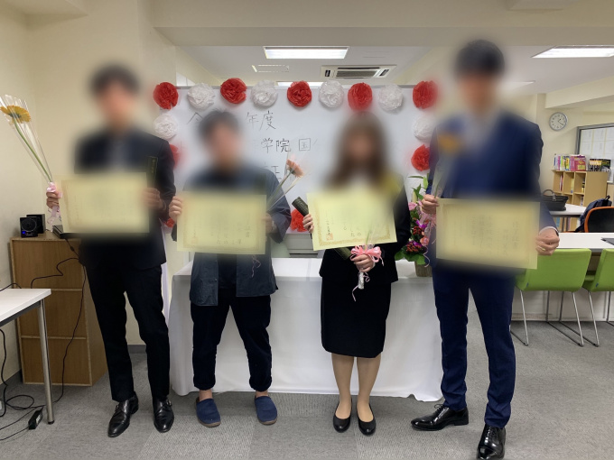お渡しする会は、キャンパス長の言葉、卒業証書授与、昨年の卒業生の言葉、今年度卒業生からの言葉