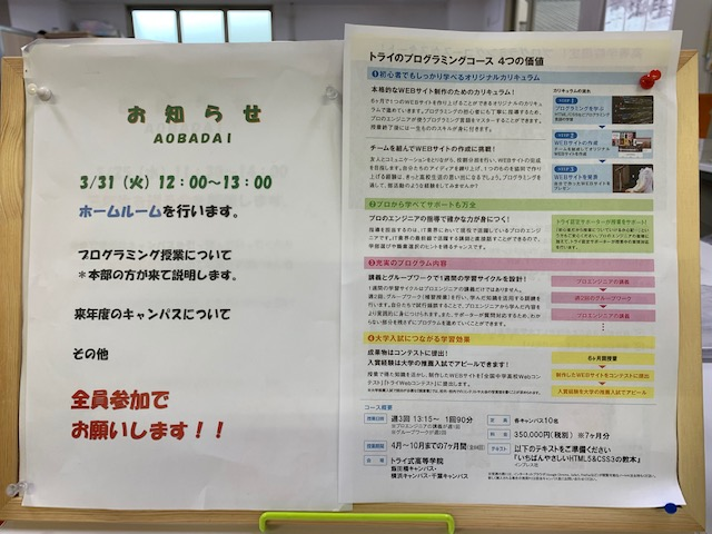 青葉台キャンパスでも講師の方々やスタッフはもちろんのこと、