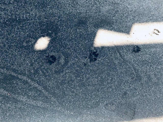 雨上がり1番に歩いたであろう猫の足跡ですね!