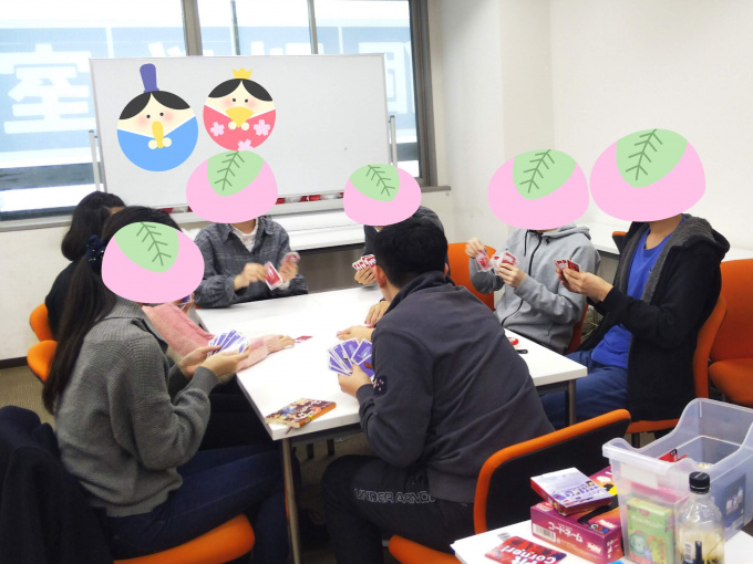 今回はいつも利用している体育館が休館だったため、キャンパスにてカードゲームを行いました。