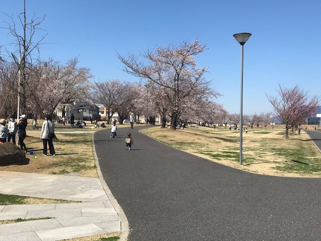 今回は春の暖かい陽気の中、桜並木の下で行いました 😳