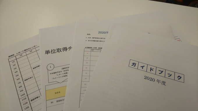 参加した生徒へ、今年度のガイドブックの説明や新しく自分でいろいろと管理するためのシートを渡し、その管理方法の説明を行いました。