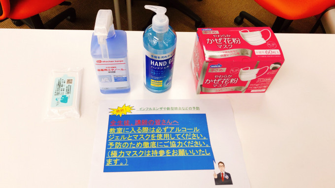 <<教室に入室する際、お手洗いの後などご協力をお願いします