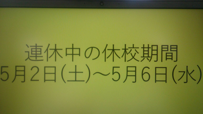 ゴールデンウイーク中の休校についてのお知らせです☆