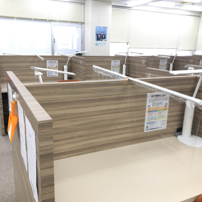 各キャンパスでは、生徒皆さんが安心して個別授業が受けられるように、飛沫感染防止の仕切りを設置。
