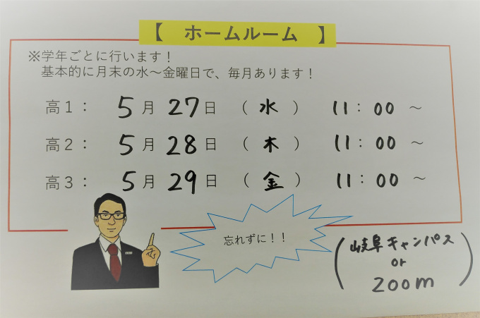 毎月 学年別ホームルームを開催いたします!