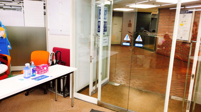 ②入り口でのマスクの着用、アルコール除菌の徹底