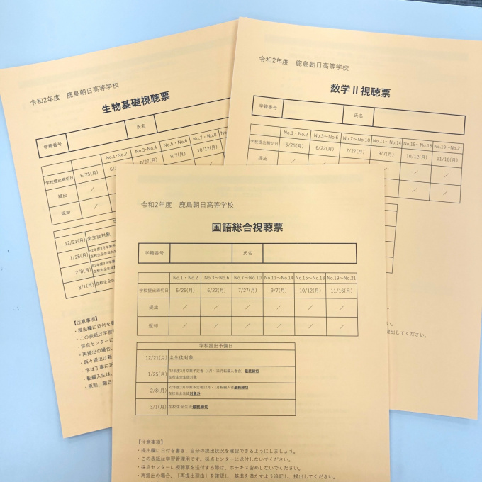 昨日、連携校の鹿島朝日高等学校より視聴票が届きました!
