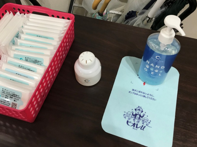 「除菌スプレーを使用して机の掃除を複数回実施」