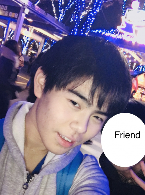 ↑キャンパスの友達とイルミネーションを見に行った時のT君 😛