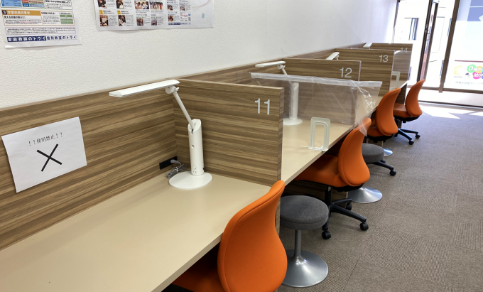 生徒と講師の間に透明のパーテーションを設置しております。