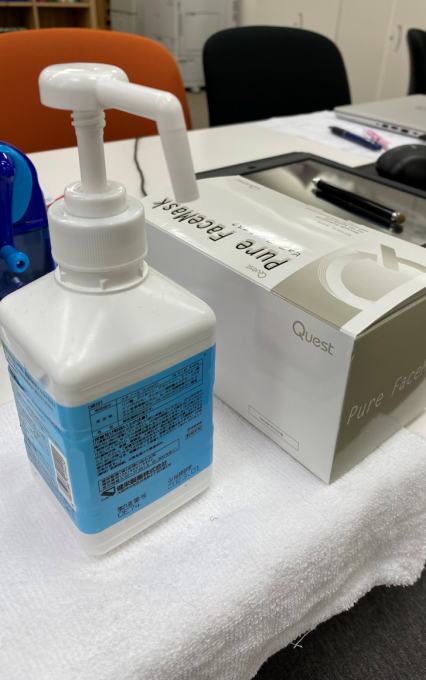 また、キャンパスではマスク着用をお願いしております。万が一未着用の場合は教室にてお渡ししています。