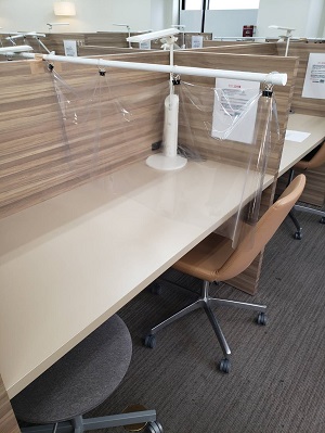 渋谷キャンパスでは、キャンパス内の定期的な除菌・換気とともに座席をビニールで区切るなど感染対策を実施。