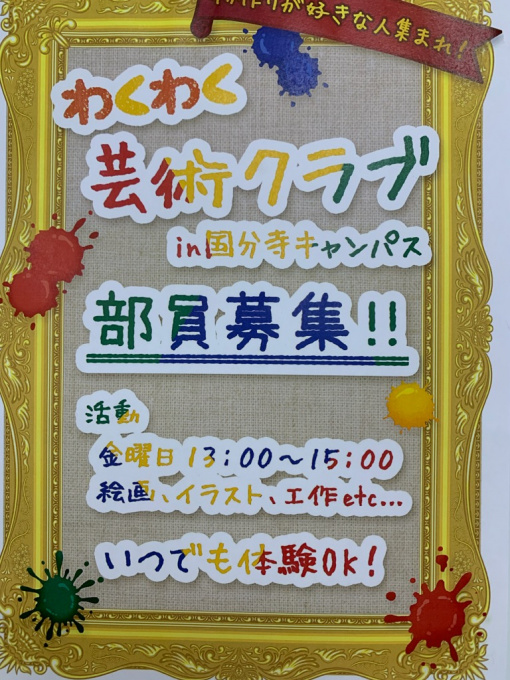 皆様こんにちは! トライ式高等学院国分寺キャンパスです :-) コロナの影響により活動がストップしていた わくわく芸術クラブが・・・ ついに・・・ 再開します :-D ・・・