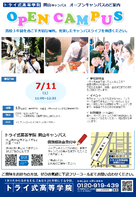 ◎場所:トライ式高等学院 岡山キャンパス