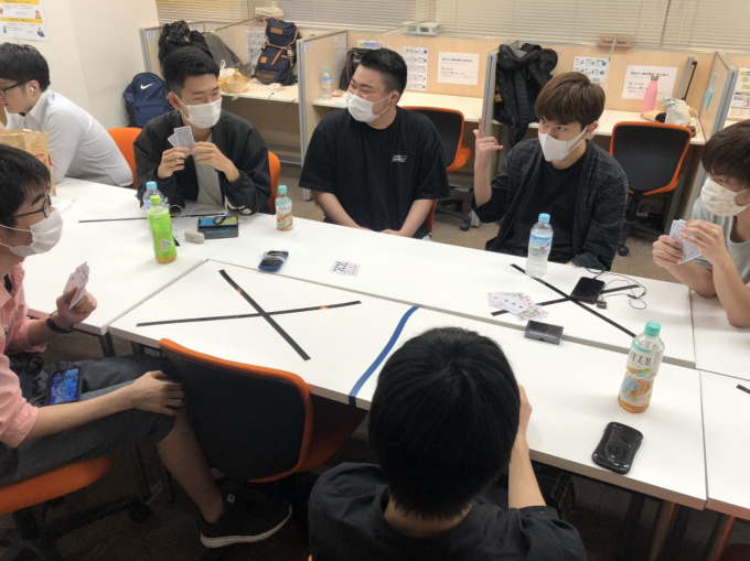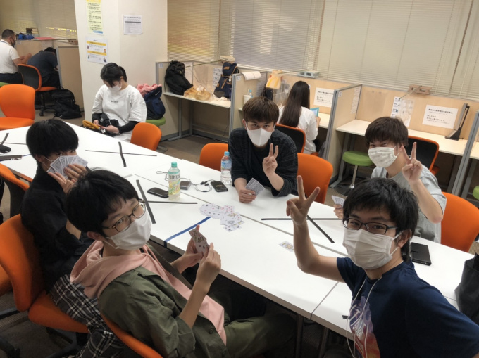 一緒にトランプをして、場を盛り上げ