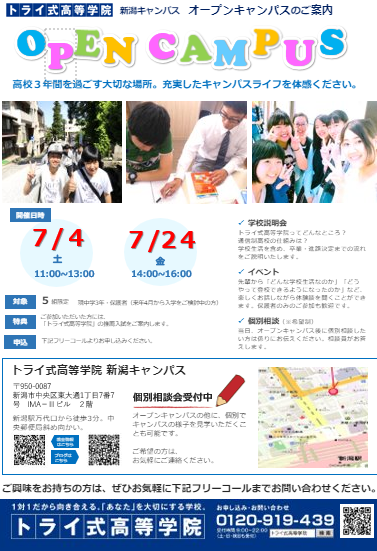 新潟市にある通信制高校のサポート校のトライ式高等学院 新潟キャンパスです。