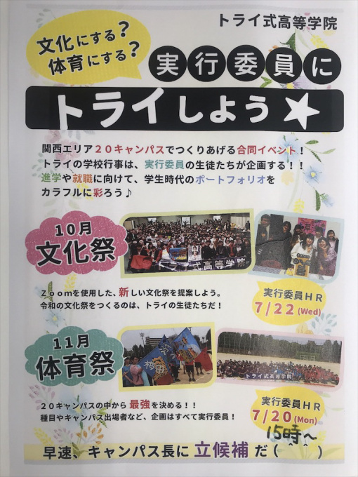 今からそれぞれの実行委員を募り、生徒主体でイベント準備を進めていきます。