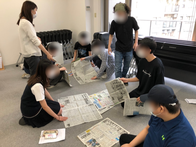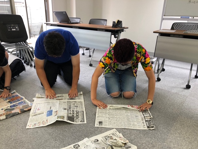 「新聞紙を使って作ったものの高さを競うゲームをしました」