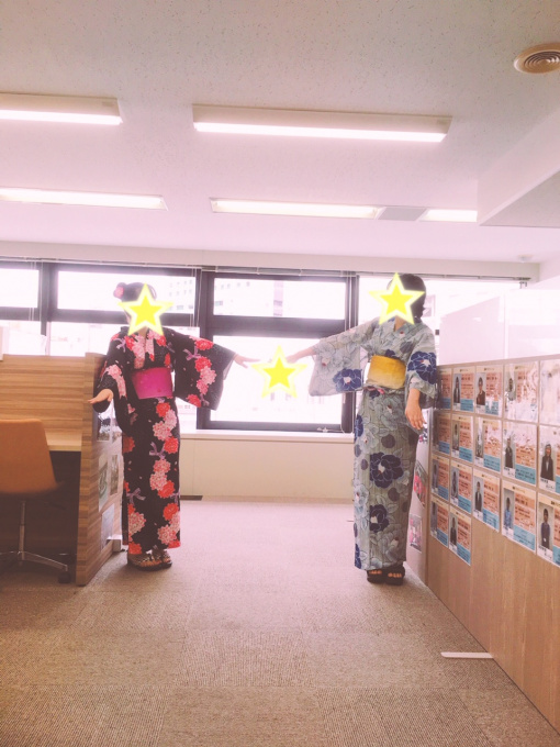 浴衣女子が教室をジャックして、キャンパス長とスタッフは写真を撮りまくりました(笑)
