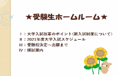 ということで、受験生のためにホームルームをZOOMで行いました!!