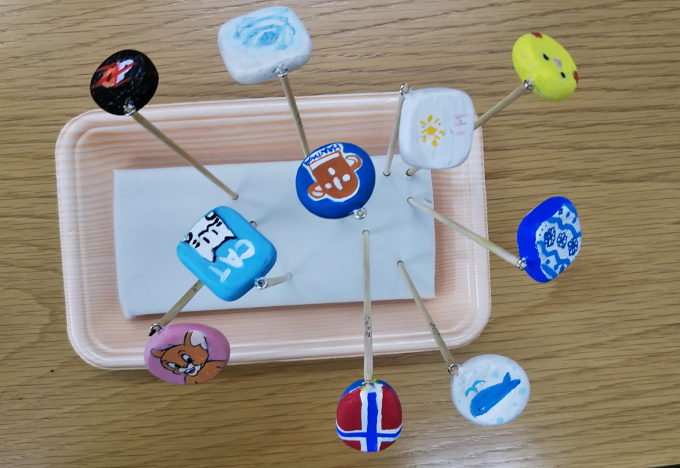 しらかべ先生の指導の下、粘土で作ったベースに思い思いの絵を描きました!