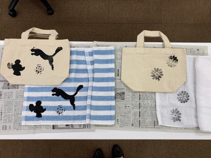 8/23に中学3年生+在校生で美術の唐木みゆ先生をお迎えしてシルクスクリーンの