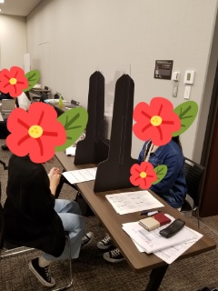 いくつかのグループに分かれていて、グループ内でペアを変えながら面接練習を行っていました!