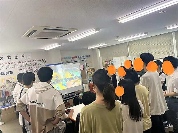 ゲームの操作方法を知る生徒が、初プレイの生徒に対して優しく教える姿にほっこりしました(*^_^*)