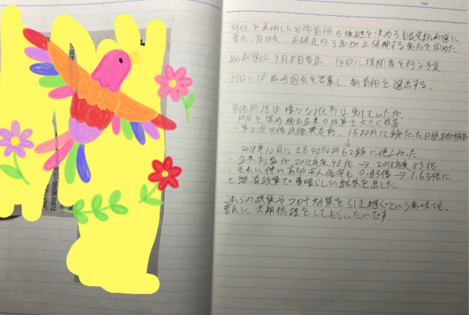 キャンパスでは、ある生徒さんが、新聞記事を切り抜いて、ニュースを調べるという取り組みを行っております。