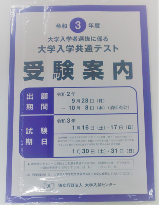9月に入り、大学入学共通テストの出願時期となりました!