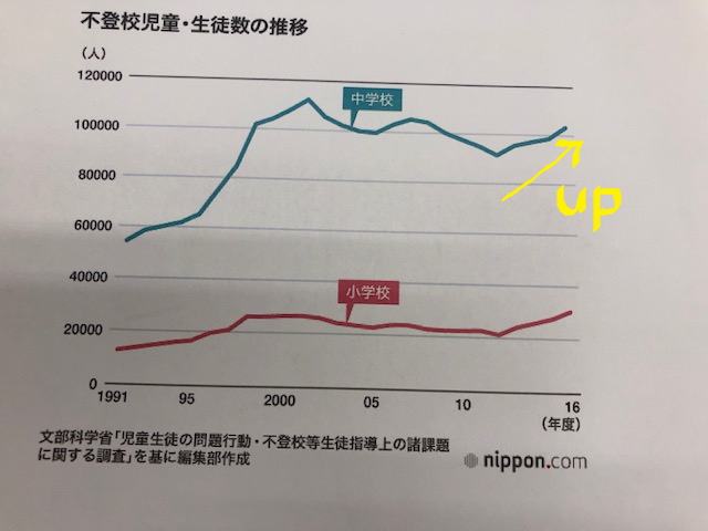 なかでも中学生の不登校が切ない事に、その数字を伸ばしています。