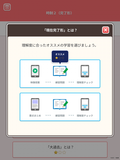 今回は①「映像授業」→「練習問題」→「理解度チェック」を選んでみました。