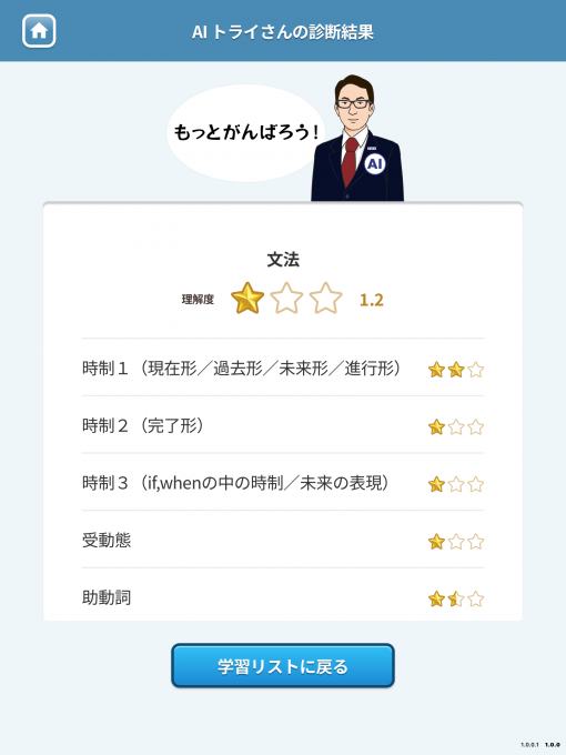 学習診断を終えると、次は診断結果を確認します。