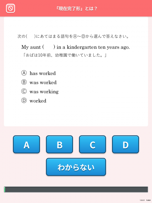 練習問題をノーミスでクリアすると最後に理解度チェックへと進みます。